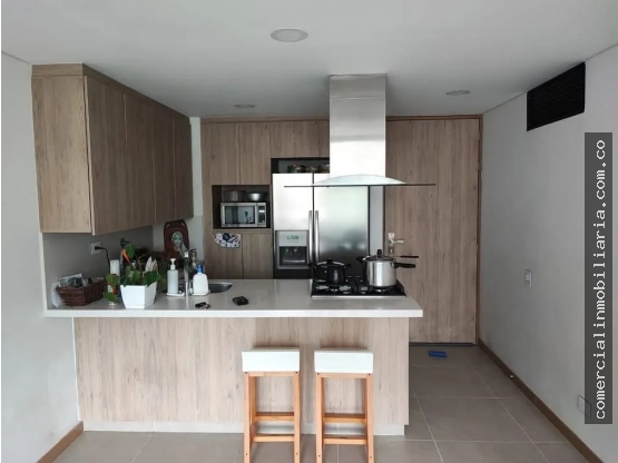 Apartamento con 2 alcobas, 2 baños, vestier, sala- comedor, cocina integral y tipo americano, cuarto de ropas, balcón, parqueadero cubierto independiente y cuarto util.