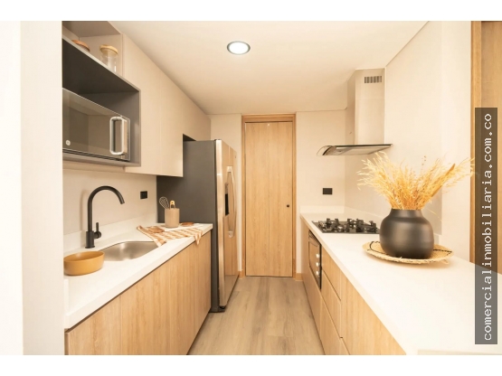 Apartamento 2 alcobas, 2 baños, closets, balcón, cocina integral, sala-comedor, zona de ropas, Acabados de lujo, parqueadero privado y cuarto útil.