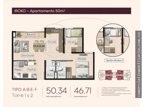 Cesión de derechos apartamento en rionegro, sector Fontibón. Nivel 5, con 50 mtrs, dos habitaciones, dos baños. Ubicado en una zona de alta valorizacion, parqueaderos comunes, entrega en obra gris.
