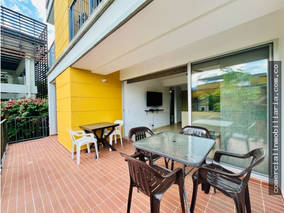 Apartamento de dos alcobas, dos baños, terraza a la cual se accede desde la sala y desde el cuarto principal, con pisos en cerámica, cocina totalmente dotada y zona de ropas. Este Apartamento se vende totalmente amoblado y cuenta con un parqueadero. Ubicado en condominio cerrado con todas las comodidades de un resort ya que cuenta con 5 piscinas, toboganes, carril de neumáticos, cancha de fútbol, zona de mascotas, turco, sauna, zona de juegos infantiles, gimnasio, cancha de squash, salón comunal, vigilancia y portería.