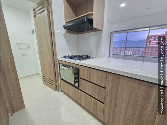 57.93 M2 de área, cuenta con dos alcobas dispuestas a ambos lados del apartamento, una alcoba con baño privado, ambas cuentan con clósets, baño social, cocina integral con horno y barra americana, zona de ropas independiente. Balcón amplio con hermosa vista a la ciudad.