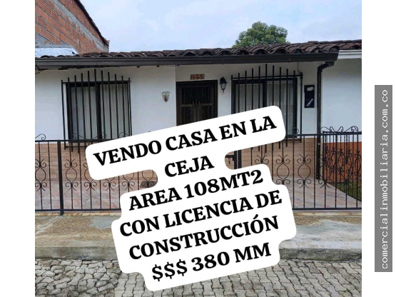 VENDO CASA EN LA CEJA $ 380MM AREA108MT2 LICENCIA CONSTRUCCION