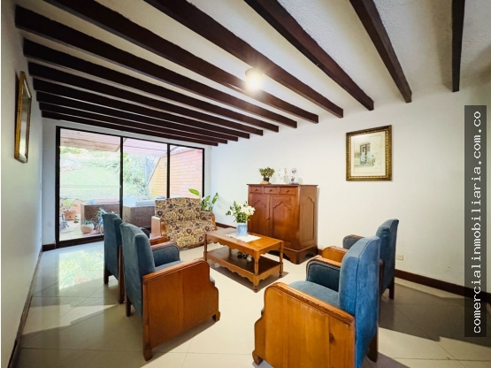 casa de 3 niveles tradicional, en el sector la sebastiana en Envigado, distribuida así: Parqueadero frente a la casa para dos vehículos, se accede a la casa por escaleras, llegando al primer nivel donde se encuentra sala comedor, cocina semi abierta, alcoba de servicio y zona de ropas, baño social y unido a la sala se encuentra un deck techado que tiene salida a zona de verde. En el segundo nivel se encuentran 3 alcobas, dos baños y estudio o sala de estar bastante amplia. Tenemos también un nivel de mansarda amplio, un espacio para poner una oficina o estudio.