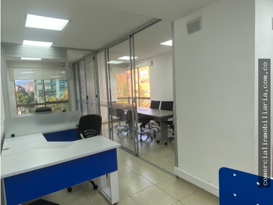 Venta de oficina amoblada ubicada a media cuadra de la Avenida El Poblado. Cuenta con un área de 44 m², distribuidos en dos espacios independientes y sala de juntas.el edficio tiene parquedero de visitantes sin costo.